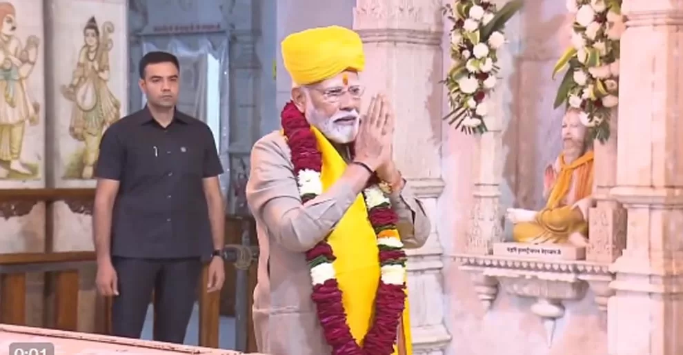 मथुरा। पीएम नरेंद्र मोदी आज मथुरा दौरे पर हैं। वह तीन घंटे श्रीकृष्ण की नगरी मथुरा में रहेंगे। प्रधानमंत्री नरंेद्र मोदी दोपहर 3.45 बजे मथुरा पहुंचे। श्रीकृष्ण जन्म स्थान मंदिर में पूजा अर्चना कर ब्रज राज उत्सव में शामिल होने के लिए रवाना हुए। इस दौरान पीएम मोदी के स्वागत के लिए ब्रजवासियों से पूरा पंडाल खचाखच भरा हुआ है। यहां पीएम मोदी 40 मिनट तक रूकेंगे। पीएम मोदी के साथ सीएम योगी आदित्यनाथ भी मौजूद हैं।